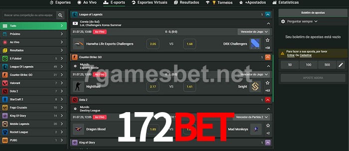 O 172bet oferece uma grande seleção de opções de apostas em e-sports com probabilidades competitivas